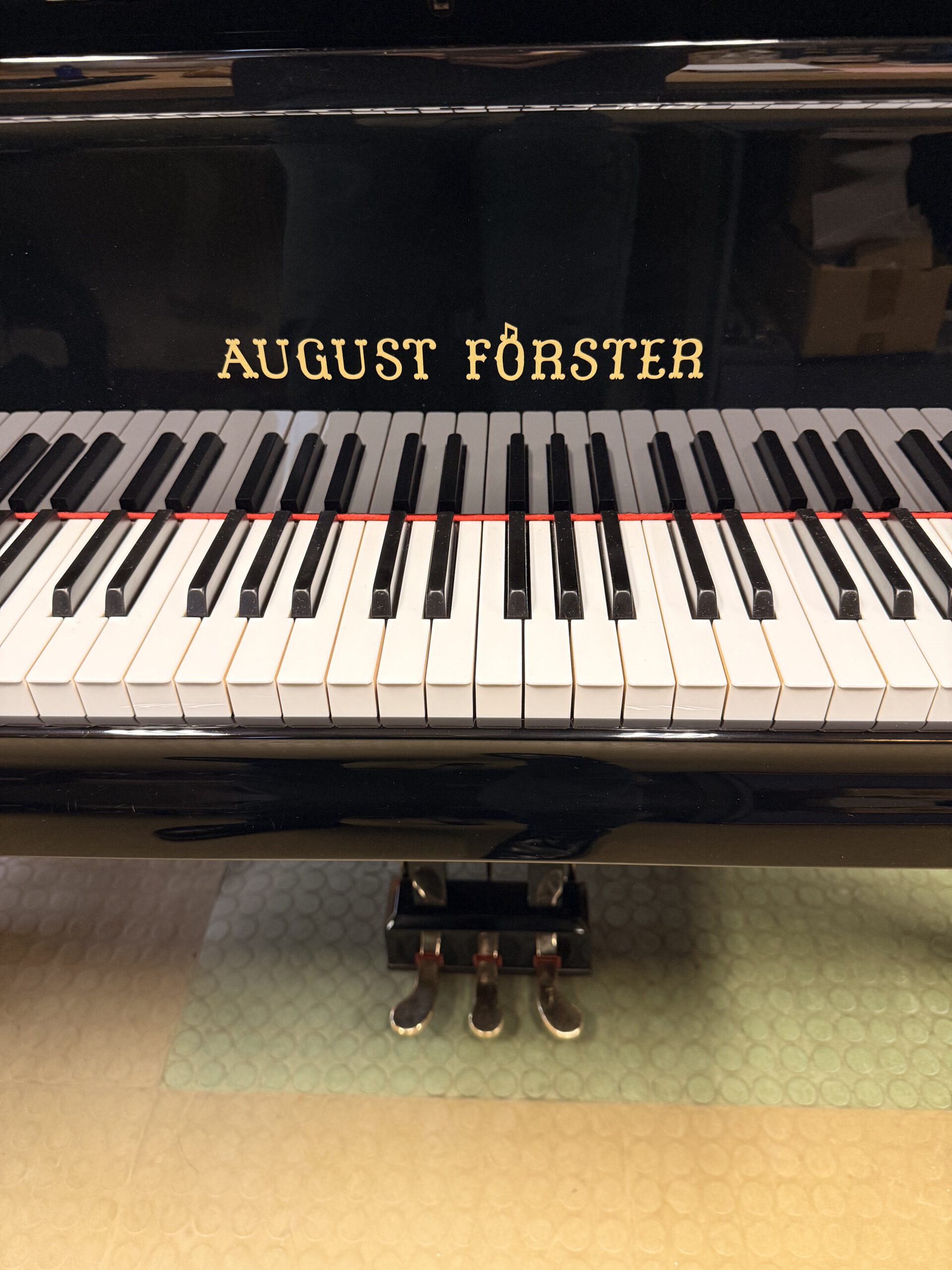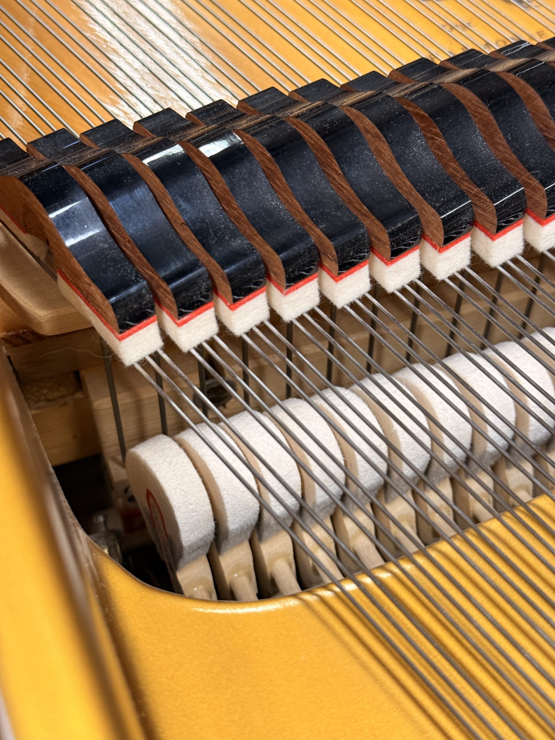 Das Polyester Gehäuse wurde komplett aufpoliert. Die Hammerköpfe abgezogen, die Mechanik überarbeitet und neu Einreguliert.